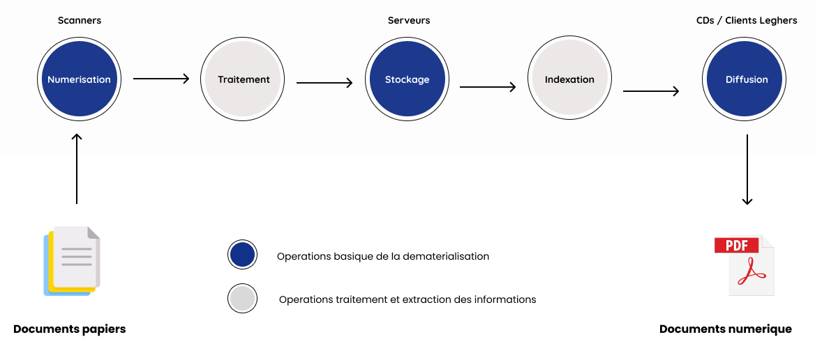 documents pshysiques, tels que le stockage, la production et l’expedition.